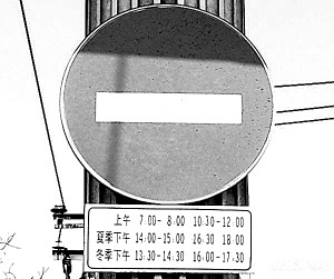 六一路上高懸的禁行牌?! 。?tīng)雨品茗 攝)