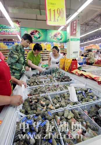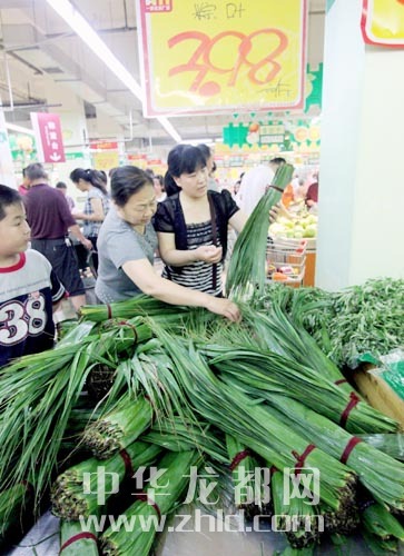 ??  距離端午節(jié)還有一周的時(shí)間,但各大超市和大街小巷已飄起了粽香。6月6日,在周口市區(qū)的各大超市、賣場(chǎng),多個(gè)品牌的粽子已擺上專柜。高檔禮盒裝粽子的數(shù)量明顯減少,大眾價(jià)位的粽子成為主流。不少超市還在柜臺(tái)的顯眼處,專門擺放了粽葉等包粽子用的原料供市民挑選。晚報(bào)記者 金月全 攝