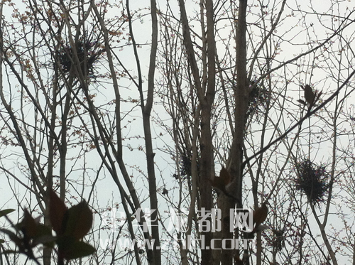????“這都是白鷺筑的巢!”看到記者很好奇,王海樹介紹說,“從2004年開始,這里每年都有萬余只白鷺來此繁衍生息,這些鳥巢都是白鷺離開后留下來的,再過一段時間,到了4月中旬,白鷺就會重新回到這里繁衍生息,一直到10月份后,白鷺才陸續(xù)離開這里,遷徙到其他地方過冬。到了第二年春天,白鷺又會回到這里生活。”
