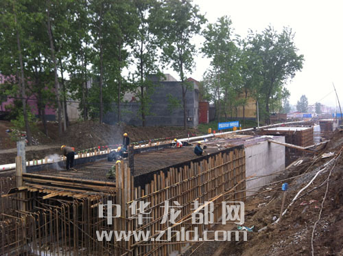 ????記者觀察到,周項路南半幅道路正在緊張施工,工地周邊已用彩鋼板圍了起來。昨日早上雖然下著小雨,仍有10多名工人正在進行箱涵的鋼筋焊接。據(jù)介紹,該箱涵是一段全長970米的明渠改造工程,呈大四方體狀,全部由鋼筋混凝土整體澆灌而成。據(jù)市住建局相關(guān)負(fù)責(zé)人介紹,其功能是將交通大道干渠里收集來的雨水,經(jīng)箱涵流至運糧河內(nèi)。由于道路在原有基礎(chǔ)上擴寬至50米,因此明渠必須改建成暗渠。箱涵工程結(jié)束后,緊接其后的是修建污水管網(wǎng)和道路沿線配套的水、電等市政基礎(chǔ)設(shè)施施工。