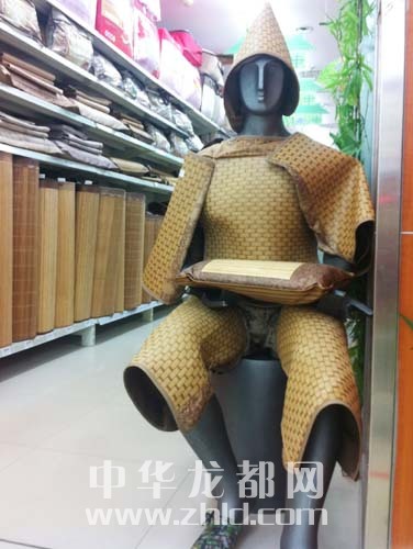 ??? 5月12日,記者在周口市區(qū)七一中路某大型超市看到,營業(yè)員把多種涼席產品裝飾在一個坐姿模特身上,在人來人往的客流中,在營業(yè)員招攬顧客的吆喝聲中,這位坐等客人上門的“蓑笠翁”不用說一句話,卻賺足了市民眼球。晚報記者 徐松 攝