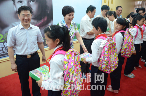 本報訊 為助力每一位貧困女孩實(shí)現(xiàn)美好的夢想,7月13日,2015年“圓夢女孩志愿行動周口行”啟動儀式在周口飯店舉行。啟動儀式上,有關(guān)領(lǐng)導(dǎo)不僅為志愿者頒發(fā)了證書,為志愿者隊(duì)伍授旗,還為太康縣圓夢女孩代表贈送了書包和圖書。