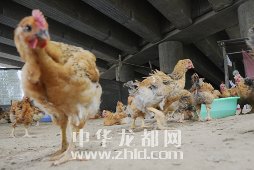 與大慶路橋下相比,周口大道橋下更有“經(jīng)濟(jì)味”,幾千只雞在橋下撒歡地跑著、追逐著、鳴唱著……好一番生活氣息。再等一段時間,這些雞就能走上人們的餐桌換成人民幣。