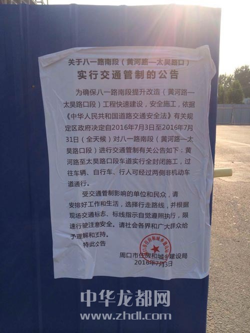 ????當(dāng)日下午,周口晚報(bào)記者在八一大道南段看到,原火車站鐵道口至太昊路路段的雙向機(jī)動(dòng)車道已全線封閉,“過往車輛請(qǐng)繞行”的交通警示牌也已豎立在路口,幾輛施工車輛正在現(xiàn)場(chǎng)緊張忙碌地備料、開挖路面。