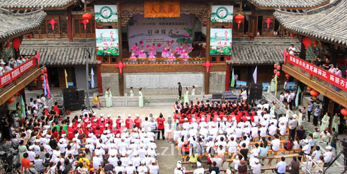 ????2016中國·淮陽龍湖賞荷旅游月活動除舉行開幕式(如圖)外,其間還將舉行周口市第三屆“龍湖杯”旅游形象大使選拔賽、“清風荷韻”書畫名家作品展及“微腐敗治理”廉政征文活動、首屆淮陽沙窩西瓜節(jié)、國家濕地公園龍湖龍舟賽、千人共行“中華成人禮”及花卉盆景展等7項系列主題活動。