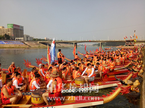 ????當日9時許,位于周口市區(qū)中州大道橋旁的中華龍舟大賽基地鑼鼓喧天,人潮涌動,不少市民攜家?guī)Э谇皝碛^戰(zhàn)。河中,20多條龍舟整齊地排列在水面上(如圖),等待“點睛”時刻的到來。一點龍眼,風調雨順、國泰民安……點睛人分別為龍舟“點睛”后,第三屆中華龍舟大賽正式拉開帷幕。
