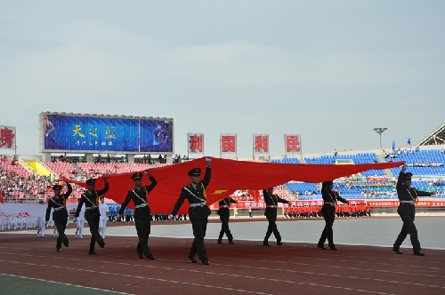 ????當(dāng)日16時(shí),國(guó)旗方陣、會(huì)旗方陣、彩旗隊(duì)、裁判員、運(yùn)動(dòng)員依次入場(chǎng),一個(gè)個(gè)意氣風(fēng)發(fā)的團(tuán)隊(duì)引來現(xiàn)場(chǎng)觀眾陣陣掌聲和歡呼聲:周口川匯區(qū)代表團(tuán)首先入場(chǎng),他們步伐矯健,英姿勃發(fā);市委辦公室代表團(tuán)精神抖擻,意氣風(fēng)發(fā);市委宣傳部代表團(tuán)邁著矯健的步伐走向主席臺(tái)……