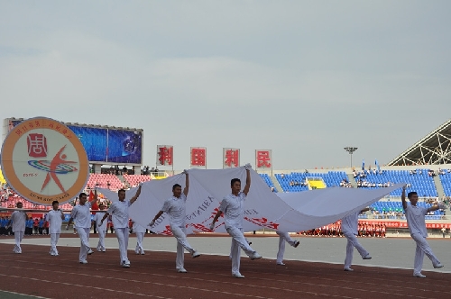 ????大型體育展示表演開始了,《印象周口》氣勢(shì)磅礴,來自周口幼兒師范學(xué)校和周口科技職業(yè)學(xué)院、沈丘縣教體局等單位的演員們披著鮮明的旗幟,激情奔跑在寬闊的體育場(chǎng)上,迎風(fēng)飄揚(yáng)的旗幟讓整個(gè)會(huì)場(chǎng)變成了藍(lán)色海洋;周口職業(yè)技術(shù)學(xué)院衛(wèi)生學(xué)院與周口文昌中學(xué)的朗誦表演《荷韻悠長(zhǎng)》吟誦豪邁,響徹會(huì)場(chǎng);周口市自行車協(xié)會(huì)聯(lián)合川匯區(qū)、淮陽縣、太康縣等多個(gè)教體育一起表演的《崛起之路》更是體現(xiàn)了周口正在實(shí)現(xiàn)中國(guó)夢(mèng)的征途上迅速崛起,書寫著新的精彩篇章……