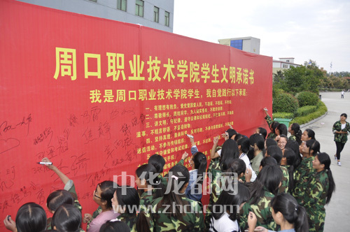 ????本報訊 昨日,周口晚報記者從周口職業(yè)技術(shù)學院了解到,新學期開始后,該校近萬名在校大學生簽訂了《學生文明承諾書》。承諾書中包含十條學生守則,為學生們的校園生活指明了方向。