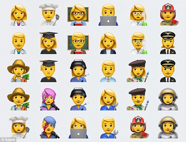 ????這一系列表情由統(tǒng)一碼聯(lián)盟于今年6月份更新,作為Unicode 9.0更新的一部分。72款最新表情中,包含“交叉手指”、“捂臉”“牛油果”“小丑”等表情。除此之外,還包括一系列動(dòng)物,如大猩猩、狐貍、鴨子、魷魚(yú)等。其中,最大的變化在于包括了可以選擇性別的各類職業(yè),如宇航員、消防員、焊接工,甚至搖滾明星。