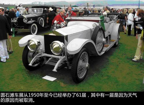 ??? 第二次的圓石灘車展是在1951年5月27日舉辦,當(dāng)時(shí)只有23輛車參展。接下來(lái)幾十年中,除了1960年,因?yàn)樘鞖鈵毫拥脑蛉∠囌?;以?963到1965年間長(zhǎng)期大雨磅礴導(dǎo)致了參展草地?fù)p壞不可用,車展地點(diǎn)出現(xiàn)一些變動(dòng)外,圓石灘車展一直舉辦的都非常順利,并且由于其參展車型都是價(jià)值連城的古董老爺車及未來(lái)的概念車,所以它還獲得了“全球最豪華的汽車展”稱號(hào)。