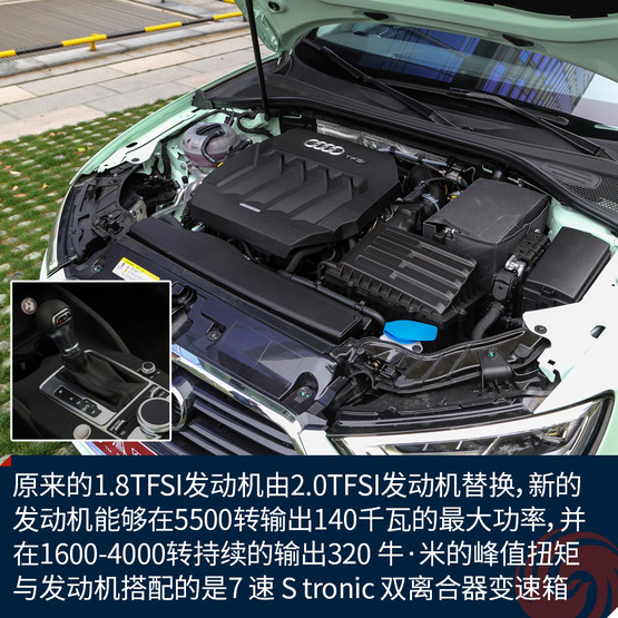 動力的改變也許是此次另一個升級的重點,除了1.4TFSI發(fā)動機,原來的1.8TFSI發(fā)動機將由2.0TFSI發(fā)動機替換,新的發(fā)動機能夠在5500轉(zhuǎn)輸出最大功率為140千瓦,并在1600-4000轉(zhuǎn)持續(xù)的輸出320 ?!っ椎姆逯蹬ぞ亍Ec兩臺發(fā)動機搭配的7 速 S tronic 雙離合器變速箱。憑借動力的優(yōu)勢,新A3 40TFSI車型的百公里加速時間縮短了0.1秒,但是油耗會相應(yīng)的有所減少。