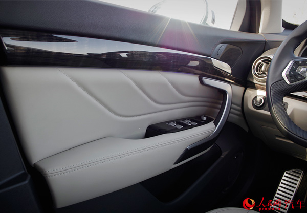 再細(xì)看VV7的內(nèi)飾做工與用料,能發(fā)覺(jué)它確實(shí)很用心。不僅中控臺(tái)質(zhì)感不錯(cuò),在車門板內(nèi)側(cè)各處也采用了材質(zhì)細(xì)膩的皮質(zhì)包裹層,門把手、按鍵都透露出精致感。WEY這款方向盤非常粗壯,包裹的皮質(zhì)手感很好,不過(guò)按鍵的布局和標(biāo)注并不能讓你一下就明白操作,需要適應(yīng)。