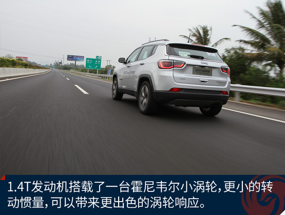 1.4T的版本很遺憾沒(méi)有配備四驅(qū)系統(tǒng),注重公路性能是它的全部,在城市路面上駕駛,指南者表現(xiàn)的很輕松輕盈,電子助力方向盤手感很輕。全新Jeep指南者還動(dòng)態(tài)底盤——四輪獨(dú)立懸掛+主動(dòng)自適應(yīng)減震系統(tǒng)。這套減震系統(tǒng)能夠在微秒間自動(dòng)感應(yīng)路面回饋,實(shí)時(shí)改變阻尼大小,從“最軟”到“最硬”只需0.2秒??梢愿惺艿降氖沁@套減震器對(duì)于路面的坑洼抑制的非常好,濾震出色,車廂內(nèi)感受到的晃動(dòng)很少。在彎道上的側(cè)向支撐相對(duì)就弱一點(diǎn),這也是魚(yú)和熊掌的原因。