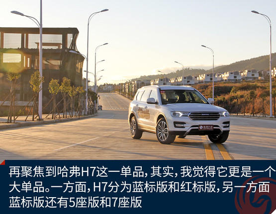 再聚焦到哈弗H7這一單品,其實,我覺得它更是一個大單品。一方面,H7分為藍標版和紅標版,另一方面,藍標版還有5座版和7座版。關(guān)于定位,紅標5座,大氣、豪華;藍標5座,時尚、運動;藍標7座,沉穩(wěn)、硬朗。據(jù)悉,未來不排除推出紅標7座版車型,具體需要根據(jù)市場反饋來決定。