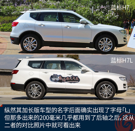提到加長,我腦子中的第一反應是軸距加長幾十甚至上百毫米,然而,哈弗藍標H7L并不是這樣??v然其加長版車型的名字后面確實出現(xiàn)了字母「L」,但那多出來的200毫米幾乎都用到了后軸之后,這從二者的對比照片中就可看出來。