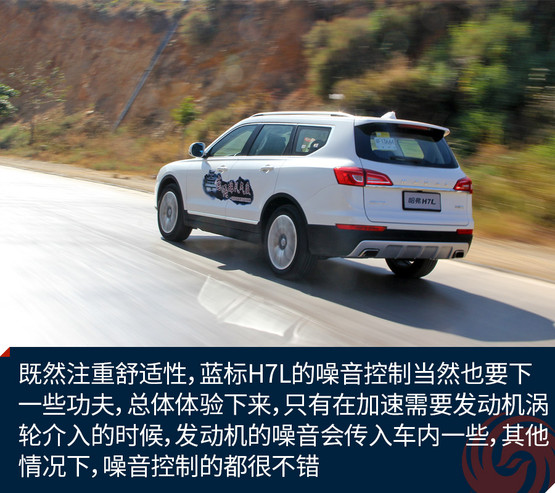 既然注重舒適性,藍標H7L的噪音控制當然也要下一些功夫,總體體驗下來,只有在加速需要發(fā)動機渦輪介入的時候,發(fā)動機的噪音會傳入車內(nèi)一些,其他情況下,噪音控制的都很不錯。