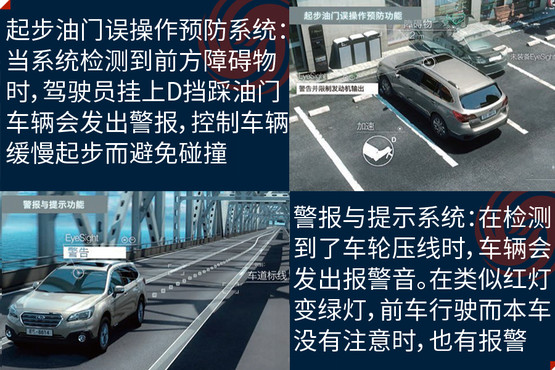 EyeSight駕駛輔助系統(tǒng)是避免事故發(fā)生,此次在中國市場亮相是它的第三代產(chǎn)品,其主要亮點是通過兩個模擬人眼的立體攝像頭,來監(jiān)控距離車輛前方100米以內(nèi),高度在1米以上的人、車輛和物體,以減少傷害為目的的駕駛輔助系統(tǒng);除了距離以外,還可以對方向、高度大小等指標進行識別。它的主要功能分為四大類,分別是防碰撞制動系統(tǒng)(PCB)、車速自適應(yīng)巡航控制系統(tǒng)(ACC)、起步油門誤操作預(yù)防系統(tǒng)和警報與提示系統(tǒng)。