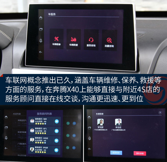 沒錯,你可能見過帶語音控制的功能,但還沒見過識別這么靠譜的;你可能見過能陪聊的,但還沒見過這么貧的;你可能見過支持裝APP的,但還沒見過集成社交平臺,能直接找車友、交朋友,甚至在地圖界面發(fā)彈幕的;你可能見過帶保養(yǎng)等服務(wù)的,但還沒見過能直接跟4S店的服務(wù)代表在線交談的......也許功能上還有需要完善的細(xì)節(jié),但不可否認(rèn),奔騰X40在車聯(lián)網(wǎng)層面開辟了一個新的方向。