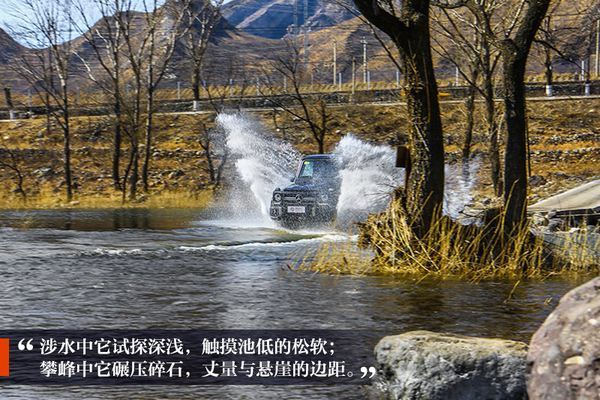 “路漫漫其修遠兮,吾將上下而求索”,在探尋真知的路上,G-Class總充當大哥的角色。一行兩車的小分隊中,G 63 AMG一次次走在前面,涉水中它試探深淺,觸摸池低的松軟;攀峰中它碾壓碎石,丈量與懸崖的邊距。說實話,在將近人高的干草叢中向上行走時,看不見道路盡頭,看不見周遭參照,在本就犯怵的前進中還伴有干枝吱吱啪啪的敲打聲,這一點點的疊加讓人不由心生膽怯,要不是有G-Class的帶領(lǐng),恐怕早就無終而返。