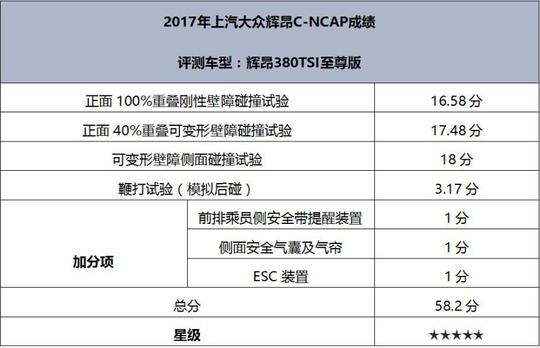 ????????輝昂成為“國家名片”,出色的安全性能同樣至關(guān)重要。在2017年度C-NCAP第一批車型的評價結(jié)果中,輝昂獲得58.2的高分,是C-NCAP 2015年版規(guī)則實(shí)施以來的最高分。