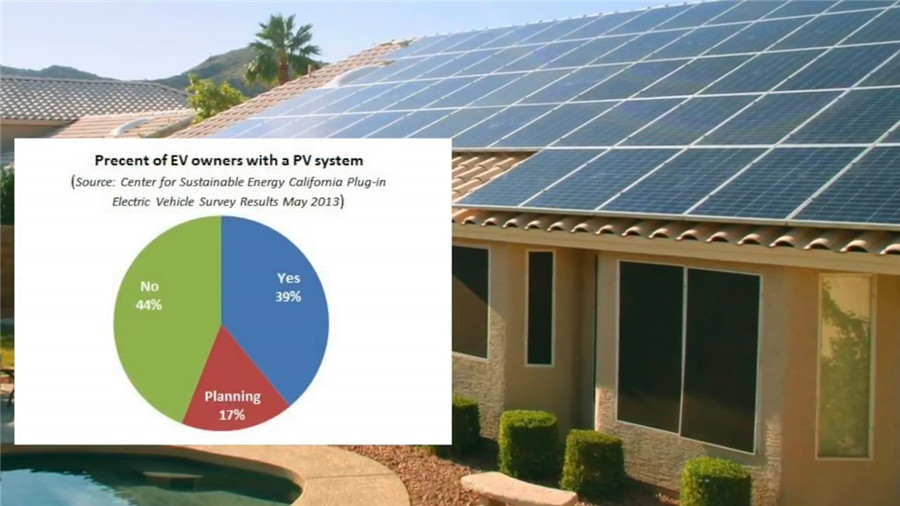 ????????一直以來爭議的問題,盡管電動車在行駛時確實沒有排放,但電能本身是二次能源,生產電能的過程中同樣會產生排放,而且這排放比起生產汽油更嚴重。視頻中給出了另一個數據,加利福尼亞使用電動車或者插電式混合動力車的用戶中,家里有太陽能發(fā)電以及類似清潔能源系統(tǒng)的占到了39%的比例,而還有17%的用戶有計劃安裝類似發(fā)電系統(tǒng)。