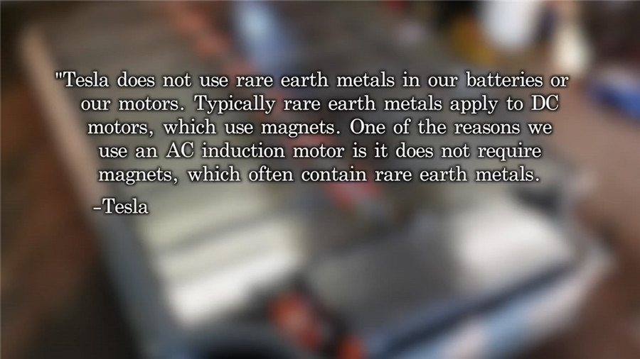 ????????視頻最后還討論了關于電動車中使用到的稀土資源,以及電池的后期回收問題。特斯拉使用了交流感應電機而非直流電機的原因就是為了少使用稀有的稀土。