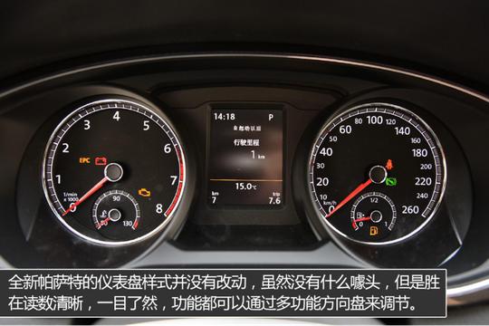 ????????全新帕薩特內(nèi)飾方面并沒有什么太多改變,還是很熟悉的大眾風(fēng),但勝在干凈利落,中控臺(tái)按鍵布局的也比較合理,很容易上手。