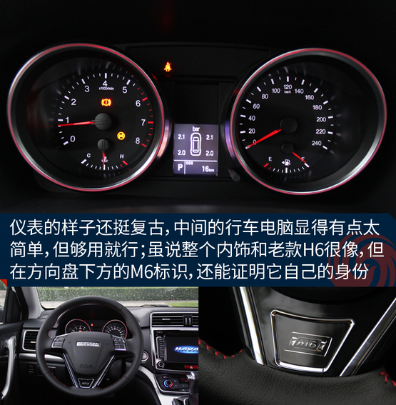 ????????車上的機(jī)械液壓助力轉(zhuǎn)向的力度有點(diǎn)沉,這點(diǎn)和老款H6特別的相似,長時(shí)間在低速行駛或者移庫挪車的時(shí)候挺廢胳膊,大老爺們長時(shí)間開都覺得酸,更何況瘦小的小女孩呢!所以從這點(diǎn)看出,M6會從配置以及更低的價(jià)格來吸引消費(fèi)者,至于想這些其他的問題,大伙就別太吹毛求疵了,畢竟魚和熊掌不可兼得。