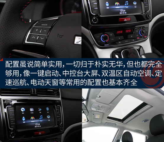 ????????內(nèi)飾相對的看著沒那么大的驚喜,主要是它與老款哈弗H6車型的樣子基本保持一致,包括橫向空調(diào)出風(fēng)口、大尺寸中控屏幕以及換擋桿造型。配置方面,該車配備了多功能真皮方向盤、防夾電動天窗、一鍵啟動、雙溫區(qū)自動恒溫空調(diào)、自動雨刷、自動大燈、主駕駛電動座椅等實(shí)用裝備,對于不到10萬的家用車來說太夠用了,沒必要再弄那些花里胡哨的東西,比單純?yōu)榱俗非筻孱^和性價(jià)比要好,總結(jié)一句話就是:一切簡單就好!