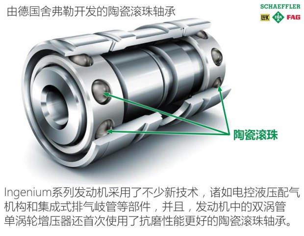 ????除此以外,這款發(fā)動機(jī)還配備了當(dāng)前的主流技術(shù),包括頂置直噴、進(jìn)氣和排氣的VVT可變正時系統(tǒng),集成式排氣歧管以及滾子搖臂氣門驅(qū)動結(jié)構(gòu)。帶陶瓷滾珠軸承的增壓器來自德國舍弗勒,由于陶瓷材料特性,理論上可以在結(jié)構(gòu)方面解決增壓器因長時間使用后軸承磨損,進(jìn)而導(dǎo)致的機(jī)油消耗問題。