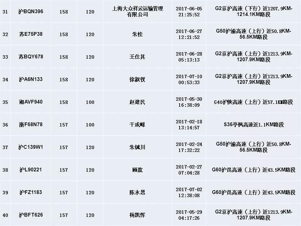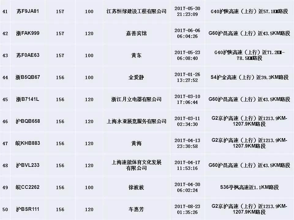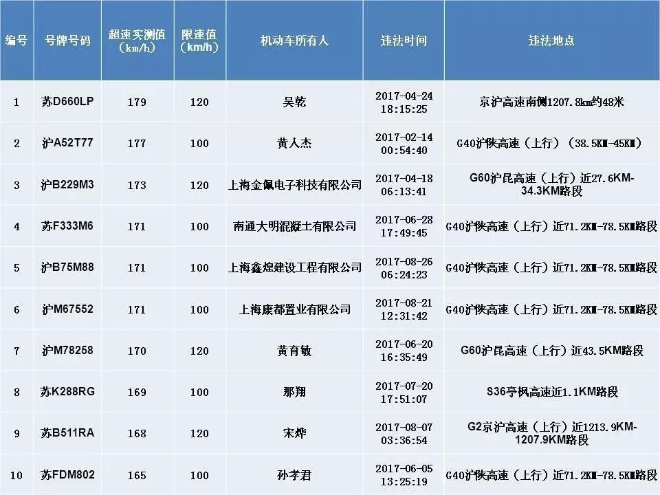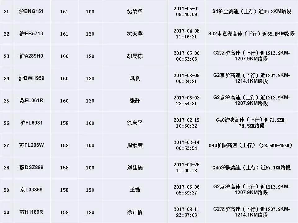 ????中青在線(xiàn)上海9月12日電(中國(guó)青年報(bào) 中青在線(xiàn)記者 王燁捷)上海交警今天公布今年以來(lái)“前五十”機(jī)動(dòng)車(chē)超速違法名單,最高時(shí)速竟達(dá)179km/h。