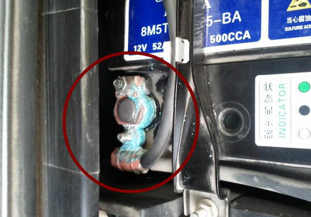 ????秋季時(shí)蓄電池的負(fù)極接線處有可能出現(xiàn)綠色類(lèi)似晶狀的氧化物,根據(jù)4S店的說(shuō)法是蓄電池的過(guò)度使用或者電池液外露導(dǎo)致的氧化,有些人甚至說(shuō)這是正?,F(xiàn)象。如果未發(fā)現(xiàn)對(duì)蓄電池的正常使用產(chǎn)生影響,發(fā)現(xiàn)這些氧化物之后用開(kāi)水沖一下即可去除,沖不掉就把它刮掉,同時(shí)抹上一點(diǎn)印度神油,確保蓄電池的堅(jiān)挺使用。至于這個(gè)印度神油,可以是黃油或者機(jī)油,抹上一點(diǎn)可以防止氧化。