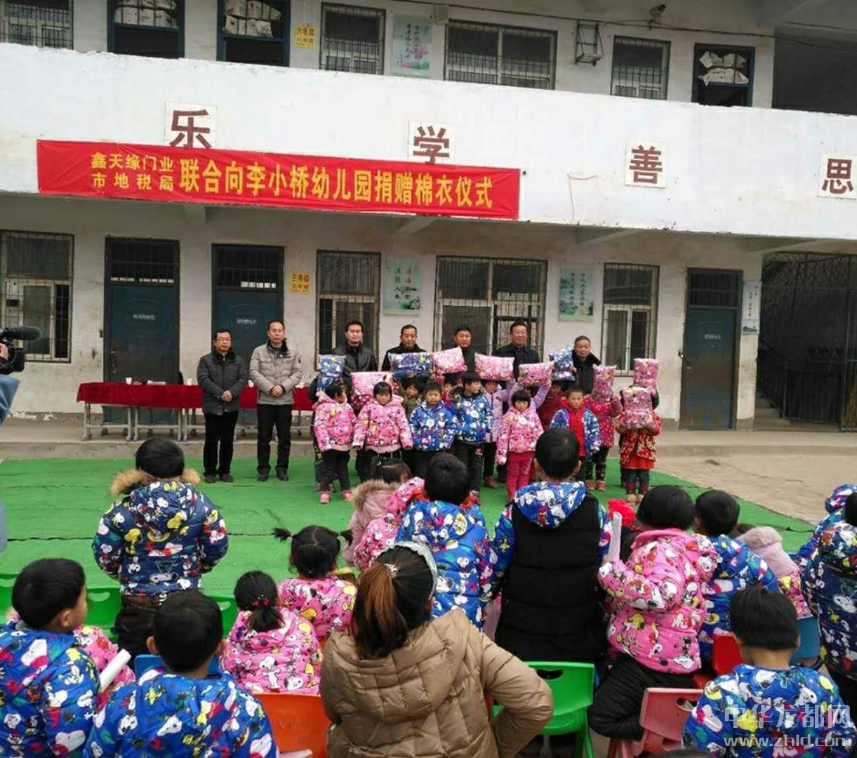 中華龍都網(wǎng)訊(周口報業(yè)全媒體記者 馬治衛(wèi) 通訊員 蘇童)一件衣物一份溫暖,一顆愛心一份感動。1月22日下午,市地稅局駐村工作隊聯(lián)合愛心企業(yè)鑫天緣門業(yè)開展了向太康縣王集鄉(xiāng)李小橋幼兒園“送溫暖、獻(xiàn)愛心”棉衣捐贈活動,為100多名孩子送去了價值5100元的御寒冬衣。市地稅局、太康縣教體局、王集鄉(xiāng)黨委政府有關(guān)負(fù)責(zé)同志及部分學(xué)生家長和全校師生共400余人參加了此次捐贈儀式。