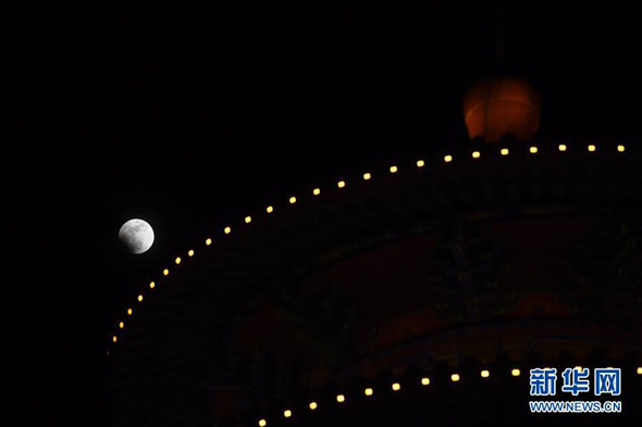 圖為在吉林長春拍攝的月全食初虧(1月31日攝)。當日是丁酉雞年最后一個滿月夜,天空中上演月全食大戲。我國大部分地區(qū)都能欣賞到一輪“紅月亮”高懸夜空的迷人景象。新華社記者 張楠 攝