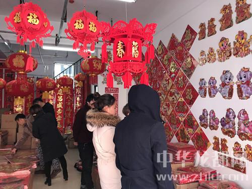 近日,華耀城A區(qū)精品市場內(nèi)出現(xiàn)了一條“紅街”,因為這條街上的門店賣的是對聯(lián)、窗花、紅燭等紅色的商品。“批發(fā)對聯(lián)就年前一個月的好生意,這幾天忙不過來,家里的親戚都來幫忙了!”經(jīng)營對聯(lián)批發(fā)生意的李陽說。他的店里掛著各式各樣的對聯(lián)、年畫(圖二),其中一些帶有小狗元素的裝飾品銷量特別好。