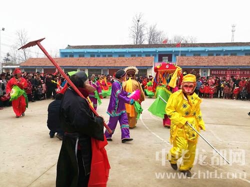 “前幾年農(nóng)閑真是把人閑得心慌,每天都是吃飽等餓、仰著臉上曬日頭?,F(xiàn)在黨的政策好,幫俺提起了精氣神兒,俺村20多個(gè)老頭老太太組成一支竹馬旱船腰鼓花棍廣場(chǎng)舞隊(duì),年輕的時(shí)候會(huì)一點(diǎn),現(xiàn)在見演出就來(lái)學(xué)一點(diǎn),上一次李全林縣長(zhǎng)晚上住俺這里幫扶,在俺這里看演出,說俺也成專業(yè)隊(duì)了。”這個(gè)群眾隊(duì)的隊(duì)長(zhǎng)是78歲的羅有德、扮相是孫悟空,旱船里的“花媳婦”是80歲的郭蘭英。連續(xù)15分鐘的蹦跳表演之后摘掉面具接受記者采訪時(shí),群眾們都不敢相信他們這么大年齡還跳得這么起勁兒。“你們的演出隊(duì)名字太長(zhǎng)了”記者說,“哈哈哈哈,俺老頭老太太都是‘三板斧’,也不會(huì)起名字,會(huì)的這幾招兒都寫到名字上了?!绷_有德、郭蘭英大笑著回答。
