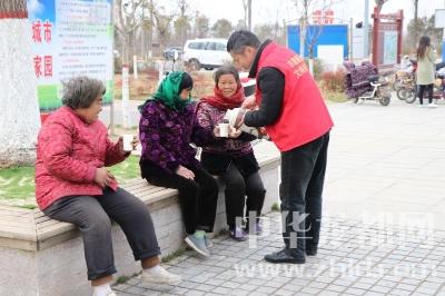 細(xì)心的志愿者們還為健身、散步、游玩的市民準(zhǔn)備了開水和杯子,為他們驅(qū)走寒意、溫暖雙手、滋潤心田?!鞍澈涸诩乙矝]想著給我倒杯水喝啊,恁還大老遠(yuǎn)給我送來!”接過志愿者手中的開水,一位老人十分激動(dòng)。