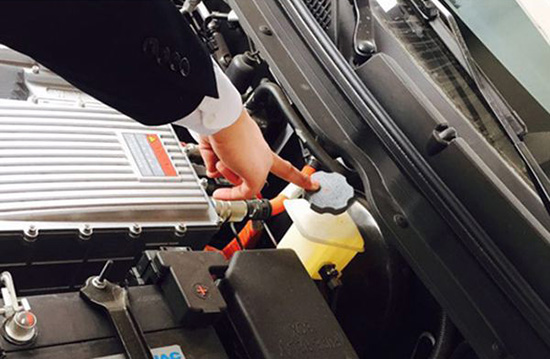 除了電器和電池檢查保養(yǎng),油液對(duì)于電動(dòng)車(chē)來(lái)說(shuō)至關(guān)重要。首先是防凍液,與燃油車(chē)不同的是電動(dòng)車(chē)防凍液用于冷卻電機(jī),它可以保證電機(jī)擁有良好的工作環(huán)境。