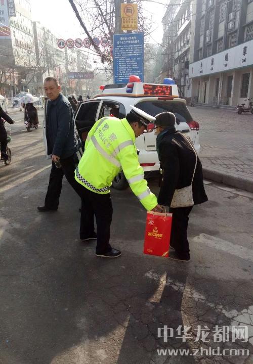 3月10日早上,鄲城縣交警大隊(duì)城市一中隊(duì)隊(duì)長范慶華、指導(dǎo)員徐錕帶隊(duì)按照日常工作安排,在新華路與文化路口站崗執(zhí)勤時(shí),看到一位腿腳不便的八旬老人拄著拐杖,手里還提著一箱火腿腸,行動(dòng)非常緩慢來到路口。