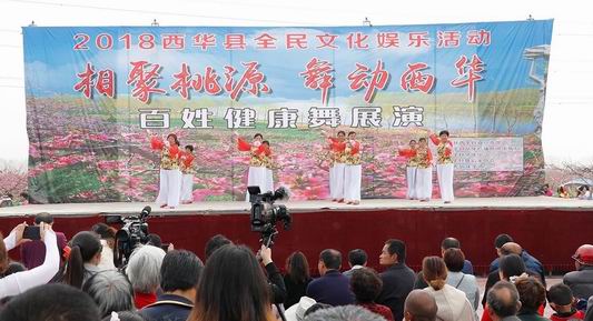 中華龍都網(wǎng)訊(周口報業(yè)全媒體記者 張猛)在西華縣第十四屆桃花節(jié)期間,由縣委宣傳部、縣文廣新局主辦的“相聚桃源 舞動西華”百姓健康舞展演活動,在黃橋鄉(xiāng)萬畝桃園舉行,來自全縣的10 余支舞蹈隊參加展演?;顒游姸嗍忻?、游客前來觀看。