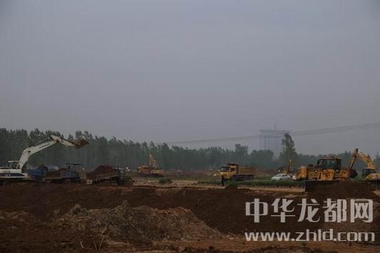 中華龍都網(wǎng)訊(周口報業(yè)全媒體記者 張勁松文/圖)4月21日上午,記者在東新區(qū)引黃調(diào)蓄施工現(xiàn)場了解到,截至目前,該項(xiàng)目已開挖土方79萬立方米,遷墳682座,伐樹21578棵。當(dāng)日上午9時許,記者在施工現(xiàn)場看到,大型挖掘機(jī)、翻斗車把挖出的黃土拉向湖岸的位置。推土機(jī)轟鳴著在平整場地,酒水車在整個施工現(xiàn)場來回不停地奔跑降塵,整個施工現(xiàn)場60余臺機(jī)械來往穿梭,湖的雛形正在形成,湖的面積逐漸“長”大,北岸湖堤也在逐漸隆起。
