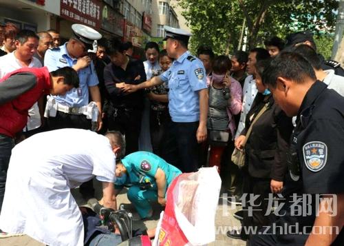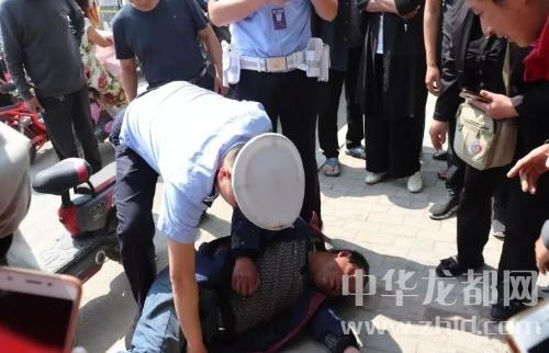 中華龍都網(wǎng)訊(周口報(bào)業(yè)全媒體記者 李瑞才 通訊員 胡洪濤 劉傳保 文/圖)5月10日上午10時(shí)許,鹿邑縣真源大道南關(guān)吊橋路口紅綠燈下,一年齡50歲左右的男子騎電動(dòng)車時(shí)突然發(fā)病摔倒在地面上,過(guò)往市民立即撥打120和110進(jìn)行求救。期間,在附近值勤的民警幫忙疏散圍觀群眾,確保救助現(xiàn)場(chǎng)交通秩序良好,防止過(guò)往車輛誤傷倒地男子。
