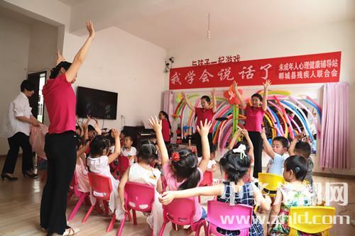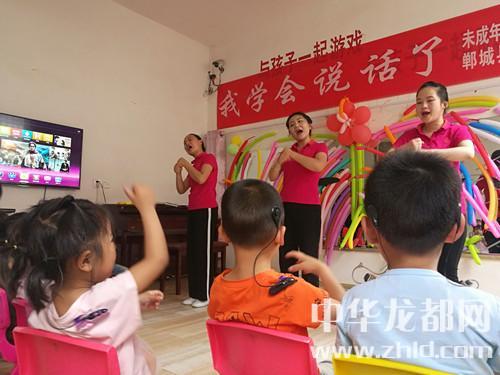 家長(zhǎng)如此開朗,孩子們的世界肯定會(huì)更加陽(yáng)光。記者隨著鄲城縣殘聯(lián)理事長(zhǎng)楊瑞林和聾兒語(yǔ)訓(xùn)中心主任邵莉娜來(lái)到了二樓聾兒語(yǔ)訓(xùn)學(xué)習(xí)班?!拔覍W(xué)會(huì)說(shuō)話了”,大愛(ài)至簡(jiǎn),教學(xué)班里僅此一句標(biāo)語(yǔ),墻上是一面鏡子,鏡子上貼滿了老師和孩子們一起做的彩氣球,旁邊是一架鋼琴,4位語(yǔ)訓(xùn)老師正在張著大口(說(shuō)話標(biāo)準(zhǔn)口形)、動(dòng)作夸張地給孩子上聽(tīng)力課,老師邊彈琴,邊做手指舞、跳少兒舞,孩子們慢慢聽(tīng)、慢慢模仿、慢慢張口咿呀跟著唱……