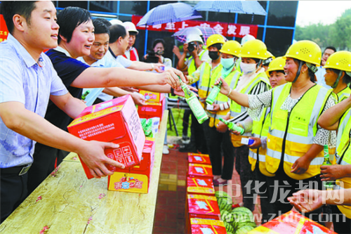中華龍都網(wǎng)訊(周口報(bào)業(yè)全媒體記者 張勁松 蘇千 文/圖)“各級(jí)領(lǐng)導(dǎo)沒(méi)有忘記我們這些高溫下作業(yè)的農(nóng)民工,不僅對(duì)我們進(jìn)行了安全知識(shí)培訓(xùn),還給我們送來(lái)了慰問(wèn)品,我非常感謝他們?!鞭r(nóng)民工朱紅軍捧著香皂、花露水等防暑降溫用品,高興不已。
