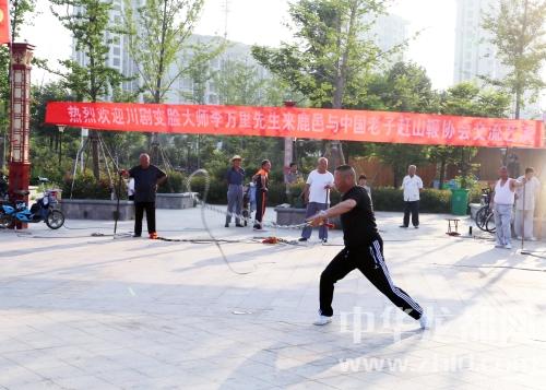中華龍都網(wǎng)訊(周口報(bào)業(yè)全媒體記者 李瑞才 通訊員 胡洪濤)6月7日一大早,鹿邑老子趕山鞭協(xié)會(huì)20多位鞭友歡聚一起切磋技藝,弘揚(yáng)傳播老子文化。