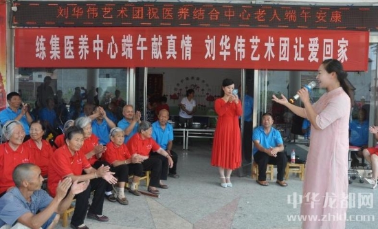 上午9點,鎮(zhèn)黨委書記張妍燕和鎮(zhèn)長劉景明等領(lǐng)導(dǎo)前來看望老人,并送來了米面油。他們和老人們坐在一起,包粽子,話家常,問冷暖。慰問演出開始后,他們和老人站在一塊,齊唱歌曲《東方紅》,并陪老人們觀看豐富多彩的文藝節(jié)目。87歲的張鳳英為了照顧父母,一生未婚,春節(jié)前腿摔斷了。剛剛可以走路的她,拄著拐杖參加活動,合唱時激動得老淚縱橫。