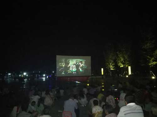 “這清楚,比原來(lái)的老式露天電影清楚多了。坐到電影機(jī)前才看到,這跟電影院里的機(jī)器一樣,是數(shù)字電影,沒(méi)有膠帶的。晚上出來(lái)涼快涼快,沒(méi)想到還能看大片兒,這都是愛(ài)國(guó)的大片兒,兩個(gè)孩子正好今天放假,我把他們都帶來(lái)了?!笔忻穸∠壬吲d地說(shuō)。