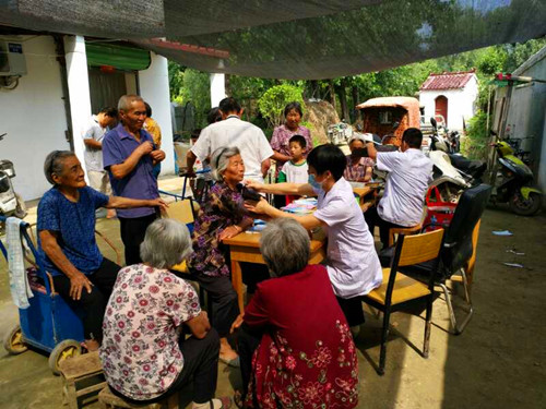 8時40分許,醫(yī)護(hù)人員在文莊社區(qū)衛(wèi)生室的醫(yī)務(wù)人員的協(xié)助下搭起了臨時義診臺,為村民測血糖、量血壓,并針對測量結(jié)果給出用藥指導(dǎo),為村民提供健康咨詢服務(wù),現(xiàn)場解答健康問題,并根據(jù)部分村民身體狀況提出合理的防治建議。
