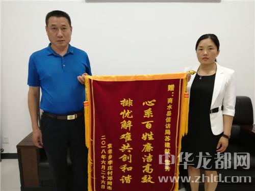 中華龍都網(wǎng)訊(周口報業(yè)全媒體記者 付永奇 通訊員魏紅 位慶華 )6月26日上午,商水縣信訪局門前鼓樂喧天、鞭炮齊鳴、人群涌動。其間,幾名群眾簇擁著一面上書“心系百姓廉潔高效排憂解難共創(chuàng)和諧”的錦旗徑自向商水縣信訪局走來。